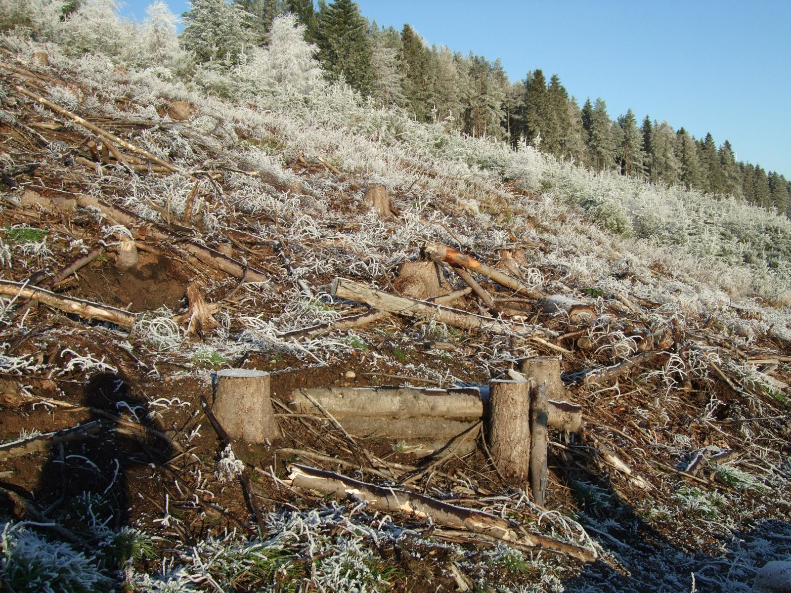 The sad remains of what used to be an interesting little jump in the woods of Fir Hill
