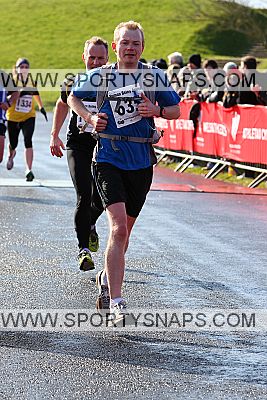 Crossing the finish line of the Llaneli half marathon